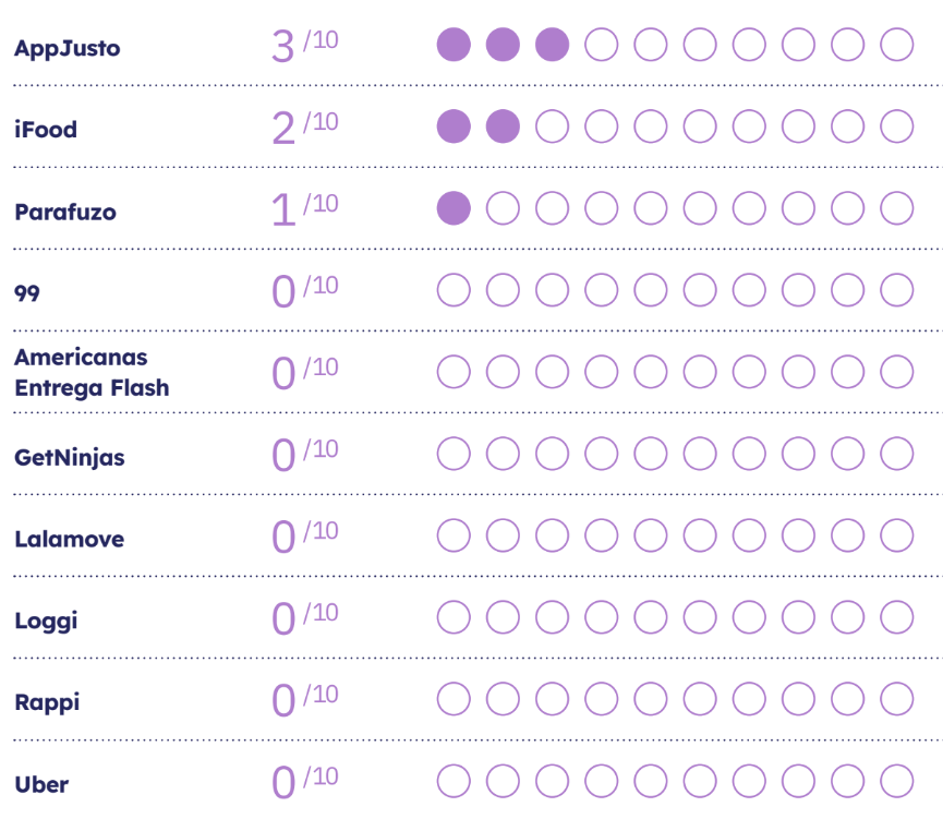 Para obter mais detalhes sobre a pontuação atribuída a cada plataforma e compreender mais a fundo os critérios utilizados, faça o download do relatório Relatório Fairwork Brasil 2023.